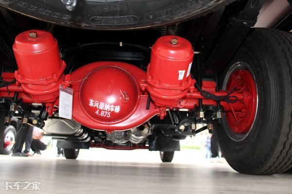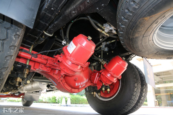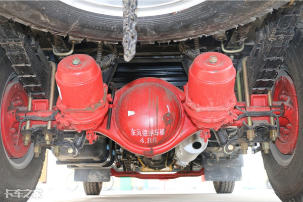 后橋方面這臺車可謂亮點(diǎn)十足,后橋使用了來自德納的5.5噸級后橋,后橋速比為5.38,較大的速比雖然犧牲了高車速,但如果我們細(xì)想一下,欄板車型對于速度的要求并不算高,但一定要有力量,這么來看這款車的這套動力鏈匹配還是非常合適的。